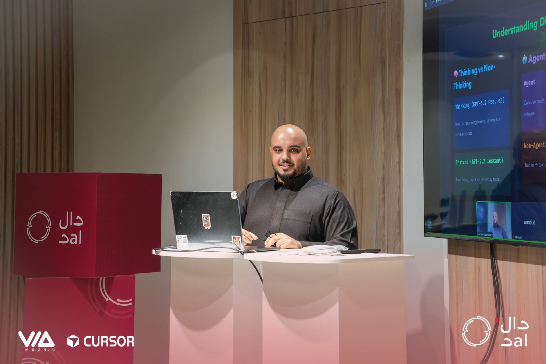 A hands-on BUILD session for devs and non-devs. Bring your laptop, choose a problem, and ship a working MVP in under 3 hours using AI tools like Cursor and Replit. جلسة بناء عملية للمطورين وغير المطورين. أحضر حاسوبك واختر مشكلة وابنِ نموذجاً أولياً في أقل من 3 ساعات باستخدام أدوات الذكاء الاصطناعي.