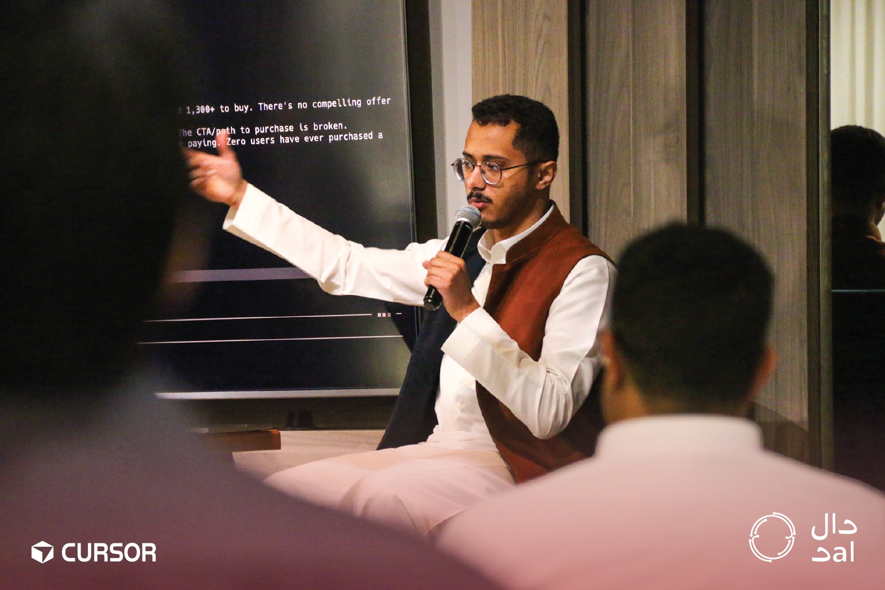 The very first in-person Cursor community meetup in Riyadh, featuring a talk from the Cursor team, tips and tricks, live demos, and networking. أول لقاء حضوري لمجتمع كيرسر في الرياض، يتضمن حديثاً من فريق كيرسر ونصائح وعروض حية وتواصل.